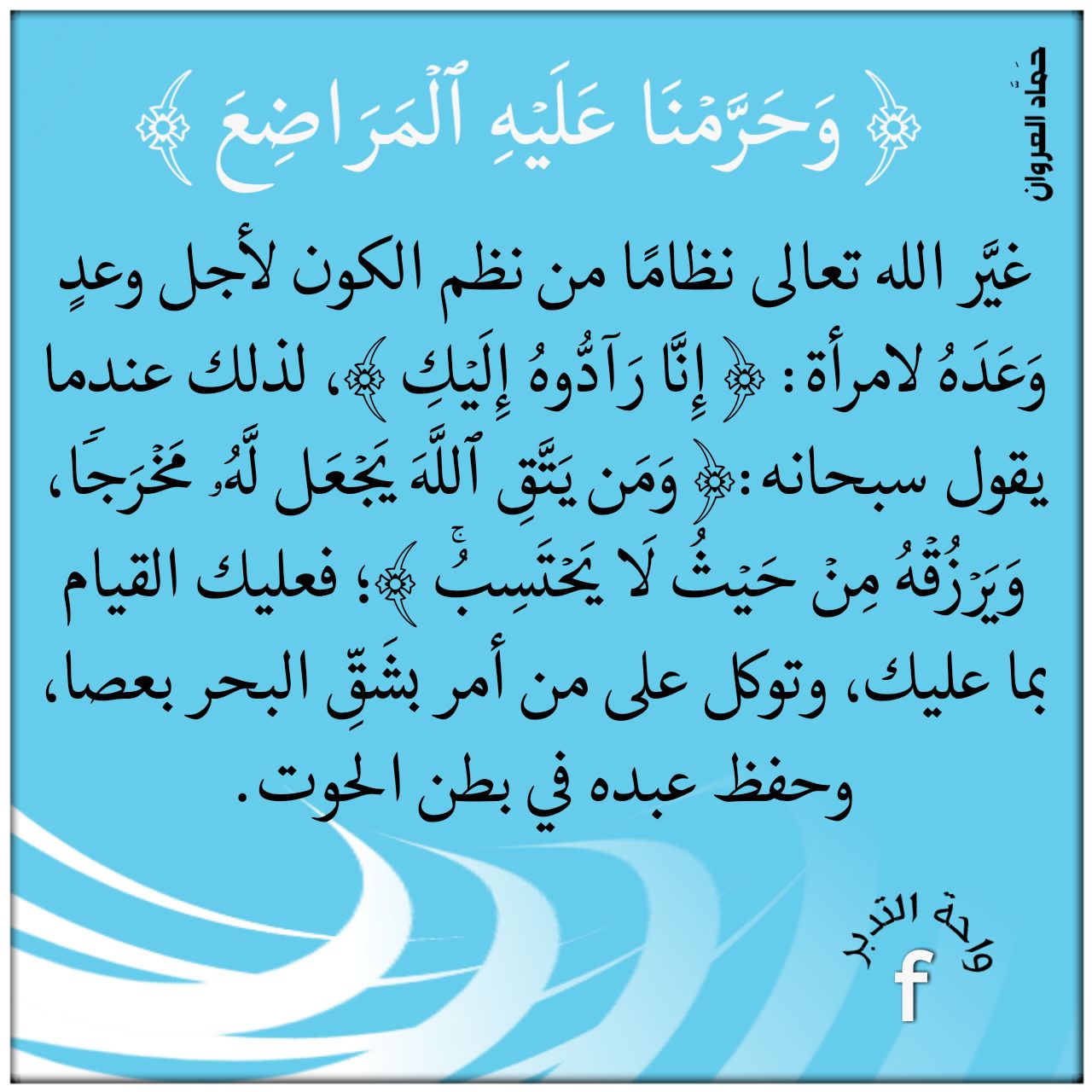 غيَّر الله تعالى نظامًا من نظم الكون لأجل وعدٍ وَعَدَهُ لامرأة: (إِنَّا رَاۤدُّوهُ إِلَیۡكِ)، لذلك عندما يقول سبحانه: (وَمَن یَتَّقِ ٱللَّهَ یَجۡعَل لَّهُۥ مَخۡ... المزيد