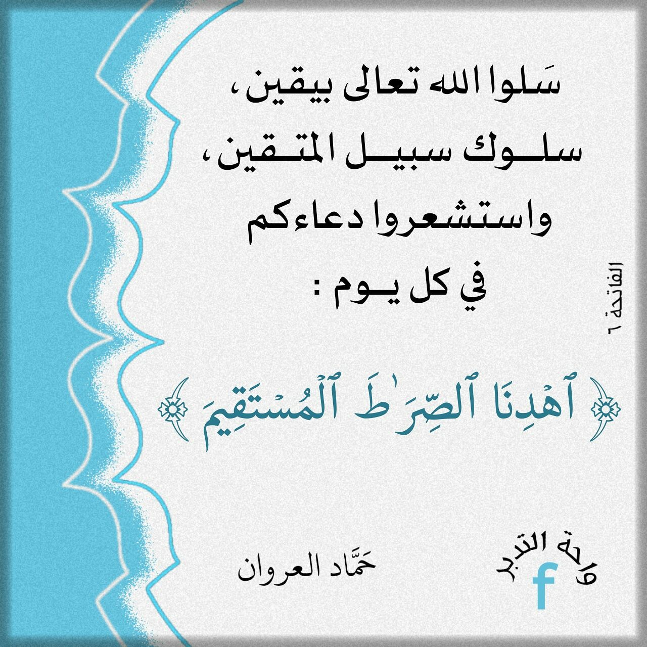 سَلوا الله تعالى بيقين، سلـــوك سبيـــل المتــقين، واستشعروا دعاءكم في كل يــوم: (ٱهۡدِنَا ٱلصِّرَاطَ ٱلۡمُسۡتَقِیمَ).