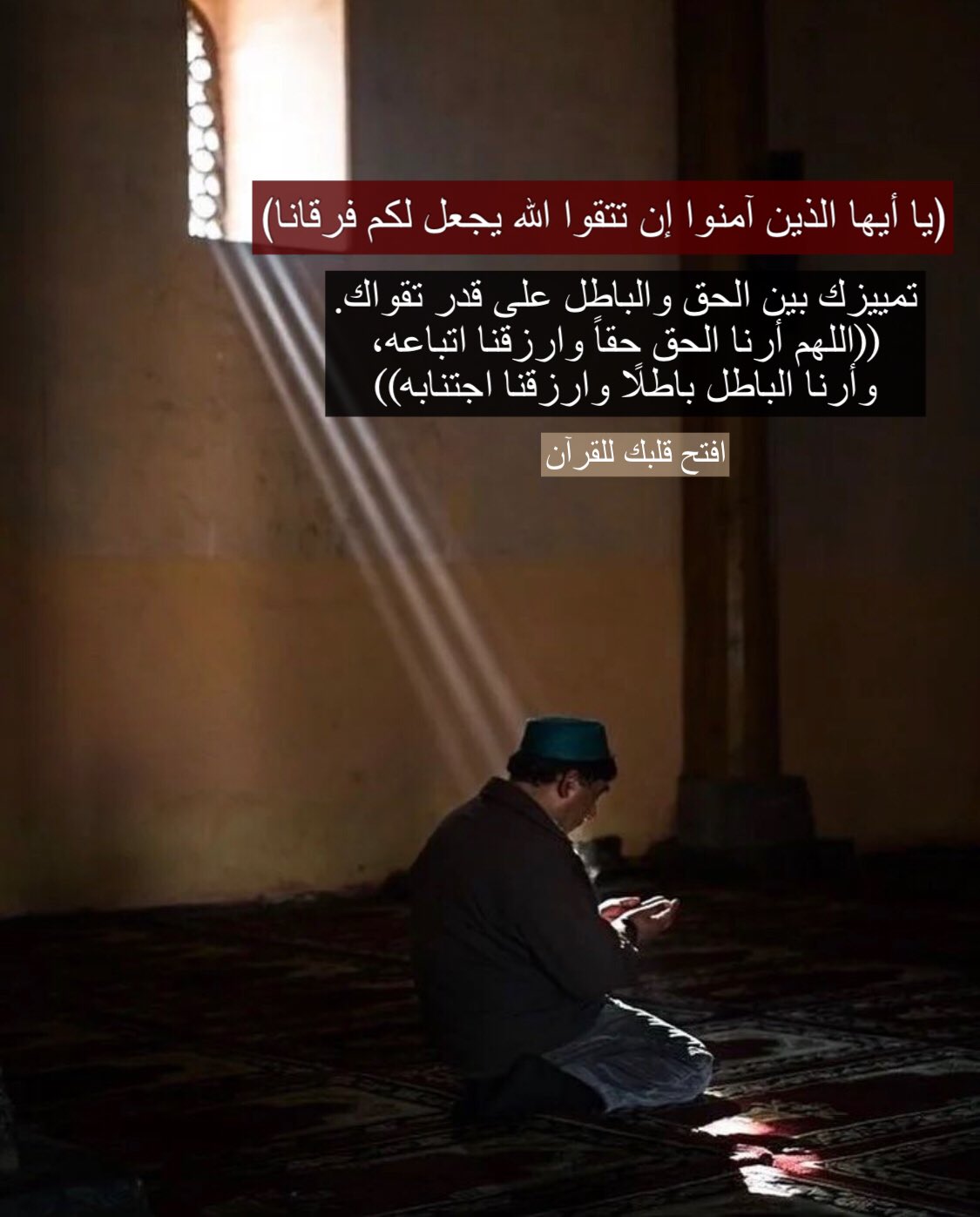 تمييزك بين الحق والباطل على قدر تقواك. (اللهم أرنا الحق حقاً وارزقنا اتباعه وأرنا الباطل باطلًا وارزقنا اجتنابه).