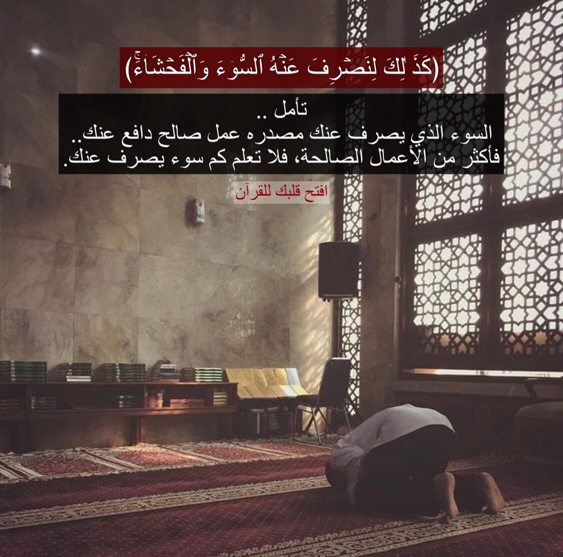 تأمل .. السوء الذي يصرف عنك مصدره عمل صالح دافع عنك .. فأكثر من الأعمال الصالحة، فلا تعلم كم سوء يصرف عنك.