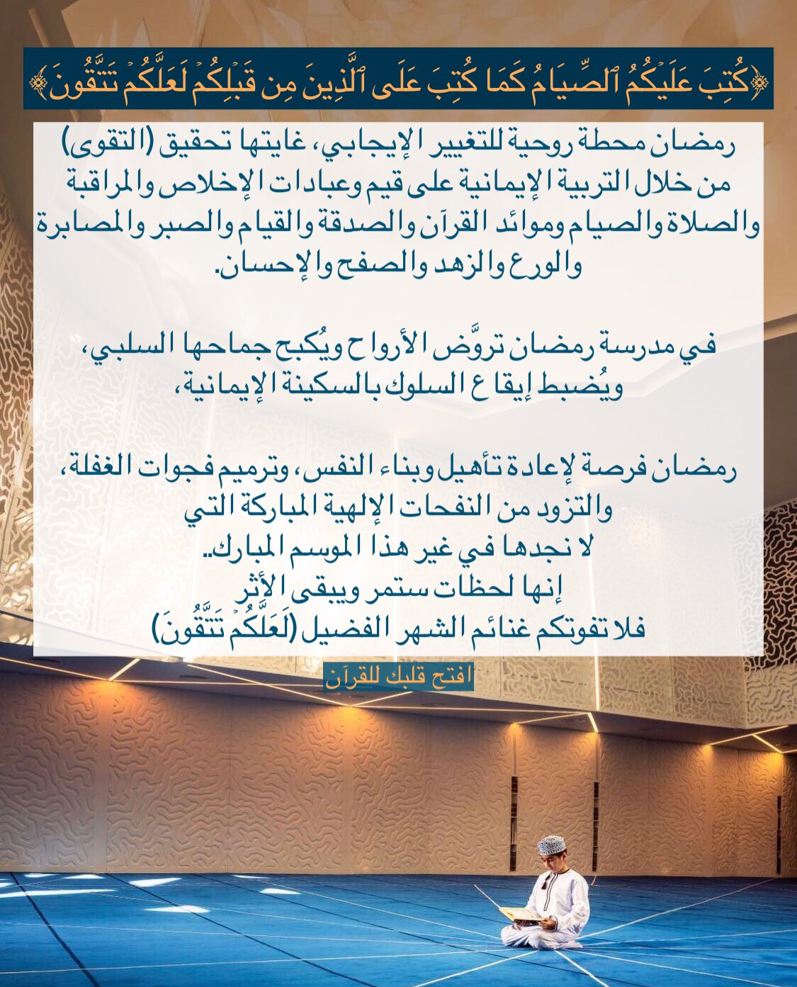 رمضان محطة روحية للتغيير الإيجابي، غايتها تحقيق (التقوى) من خلال التربية الإيمانية على قيم وعبادات ال... المزيد