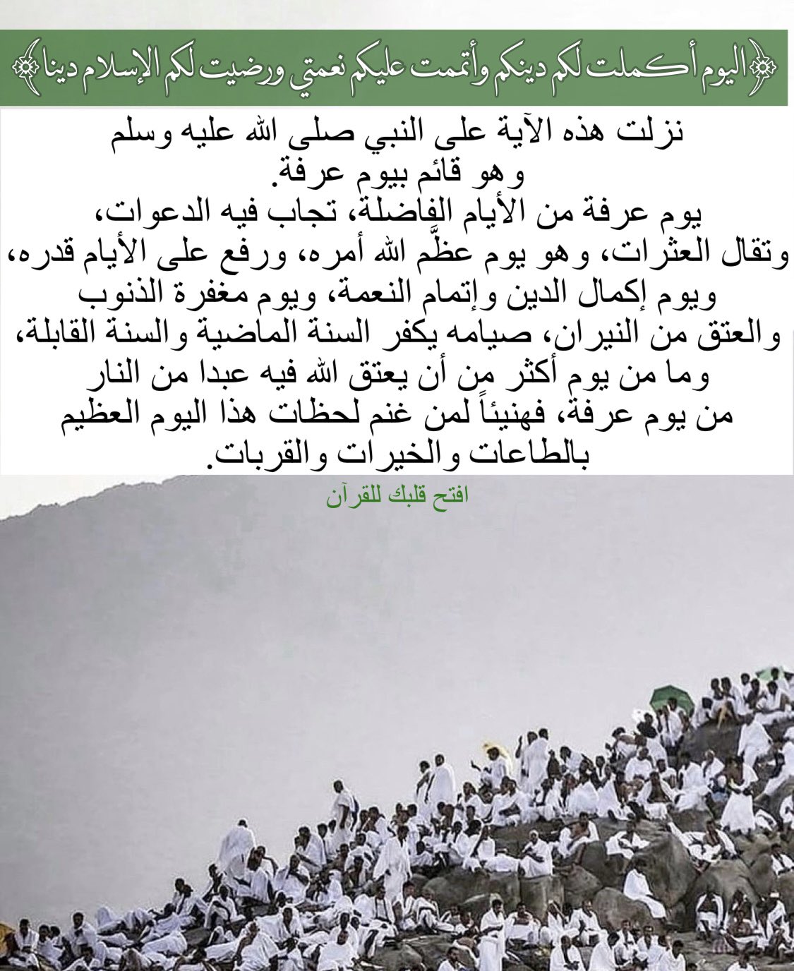 ﴿الْيَوْمَ أَكْمَلْتُ لَكُمْ دِينَكُمْ وَأَتْمَمْتُ عَلَيْكُمْ نِعْمَتِي وَرَضِيتُ لَكُمُ الْإِسْلَامَ دِينًا﴾