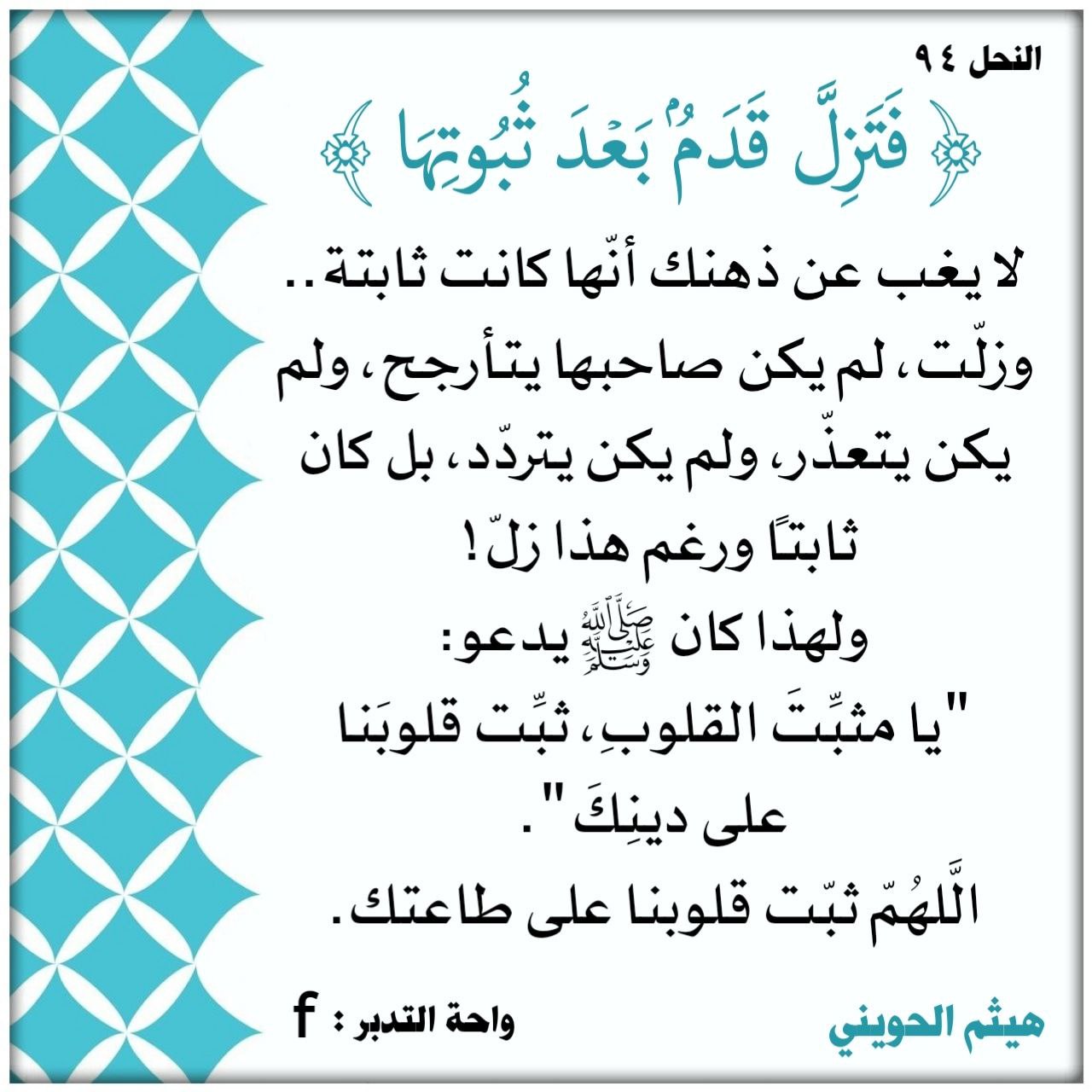 لا يغب عن ذهنك أنّها كانت ثابتة .. وزلّت، لم يكن صاحبها يتأرجح، ولم يكن يتعذّر، ولم يكن يتردّد، بل كان ثابتاً ورغم هذا زلّ! ولهذا كان (ﷺ) يدعو: "يا مثبِّتَ القلوبِ، ثبِّت قلوبَنا على دينِكَ". الَّلهُمّ ثبّت قلوبنا على طاعتك.