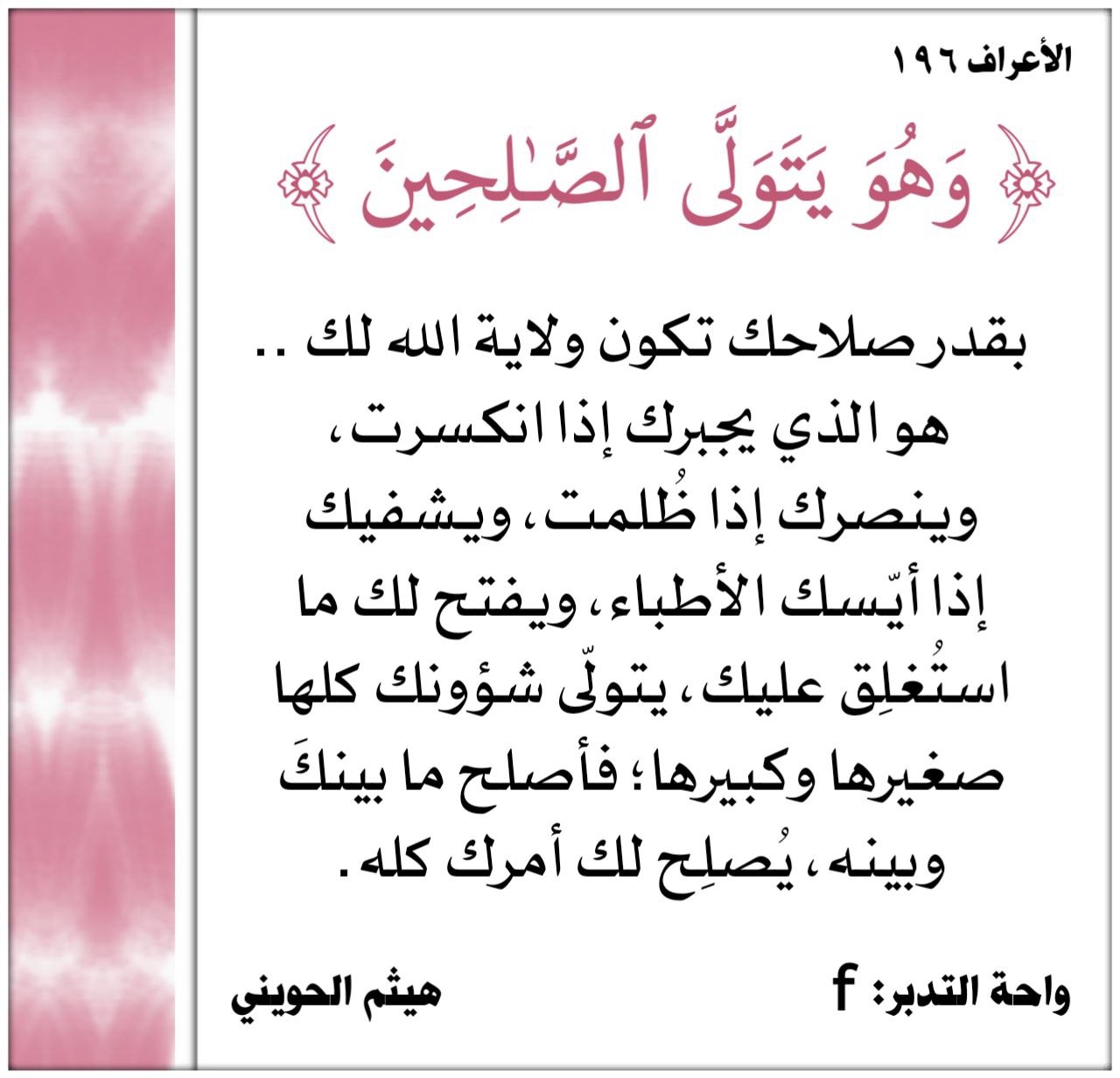 بقدر صلاحك تكون ولاية الله لك .. هو الذي يجبرك إذا انكسرت، وينصرك إذا ظُلمت، ويشفيك إذا أيّسك الأطباء، ويفتح لك ما استُغلِق عليك، يتولّى شؤونك كلها صغيرها وكبيرها؛ فأصلح ما بينكَ وبينه، يُصلِح لك أمرك كله.