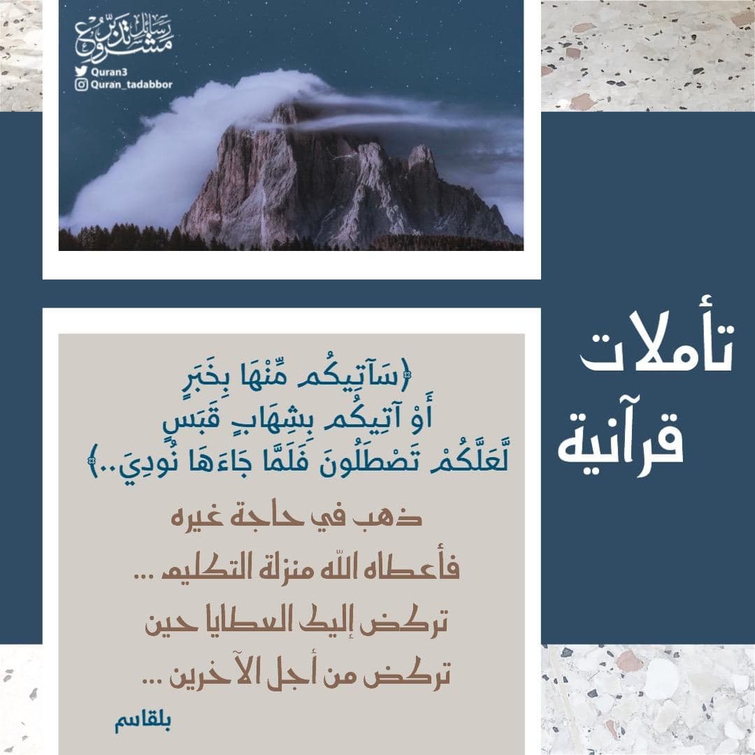 ﴿سَآتِيكُم مِّنْهَا بِخَبَرٍ أَوْ آتِيكُم بِشِهَابٍ قَبَسٍ لَّعَلَّكُمْ تَصْطَلُونَ فَلَمَّا جَاءَهَا نُودِيَ..﴾