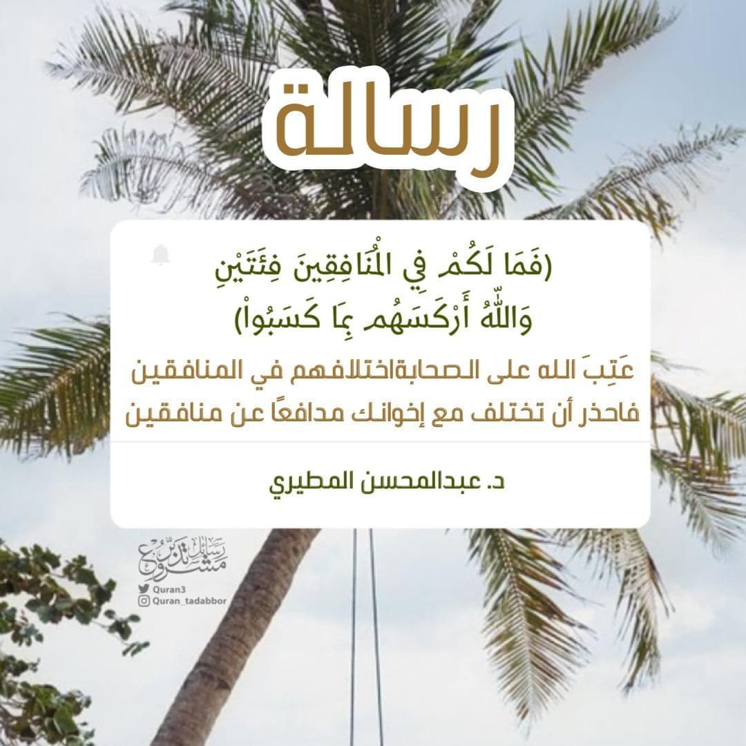 (فَمَا لَكُمْ فِي الْمُنَافِقِينَ فِئَتَيْنِ