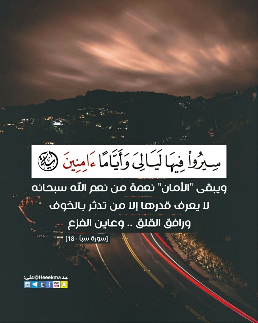 سيروا فيها ليالي واياما آمنين ويبقى "الأمان" نعمة من نعم الله سبحانه لا يعرف قدرها إلا من تدثر بالخوف ورافق القلق .. وعاين الفزع