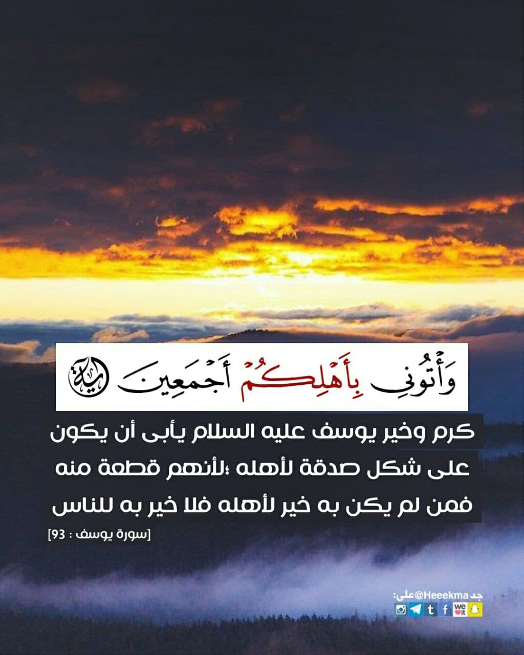 وأتوني بأهلكم أجمعين كرم وخير يوسف عليه السلام يأبى أن يكون على شكل صدقة لأهله،ﻷنهم قطعة منه، فمن لم يكن به خير ﻷهله فلاخير به للناس