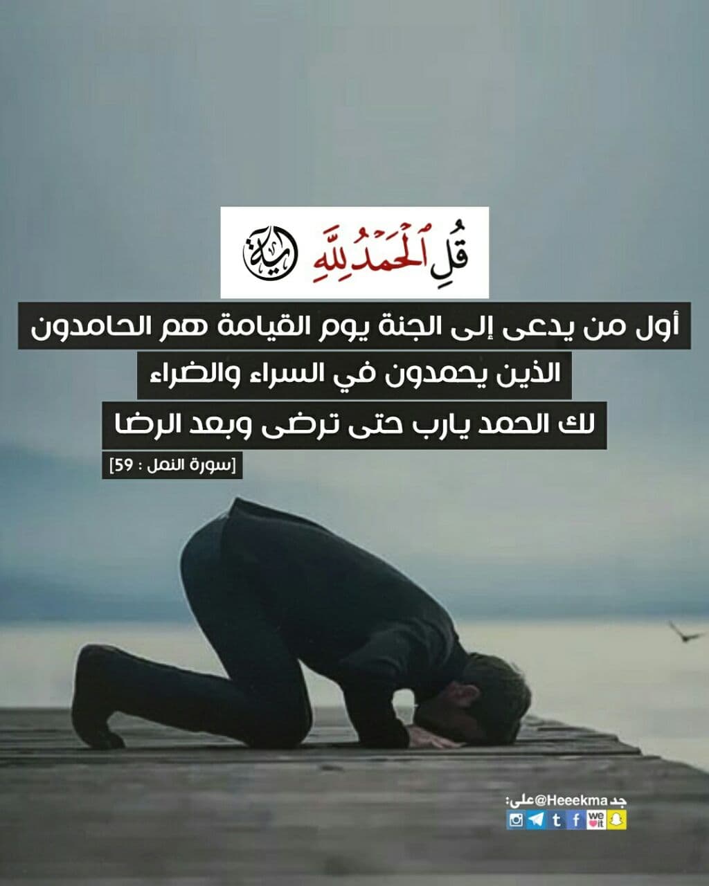 قل الحمدلله أول من يدعى إلى الجنة يوم القيامة هم الحامدون الذين يحمدون في السراء والضراء لك الحمد يا رب حتى ترضى وبعد الرضا