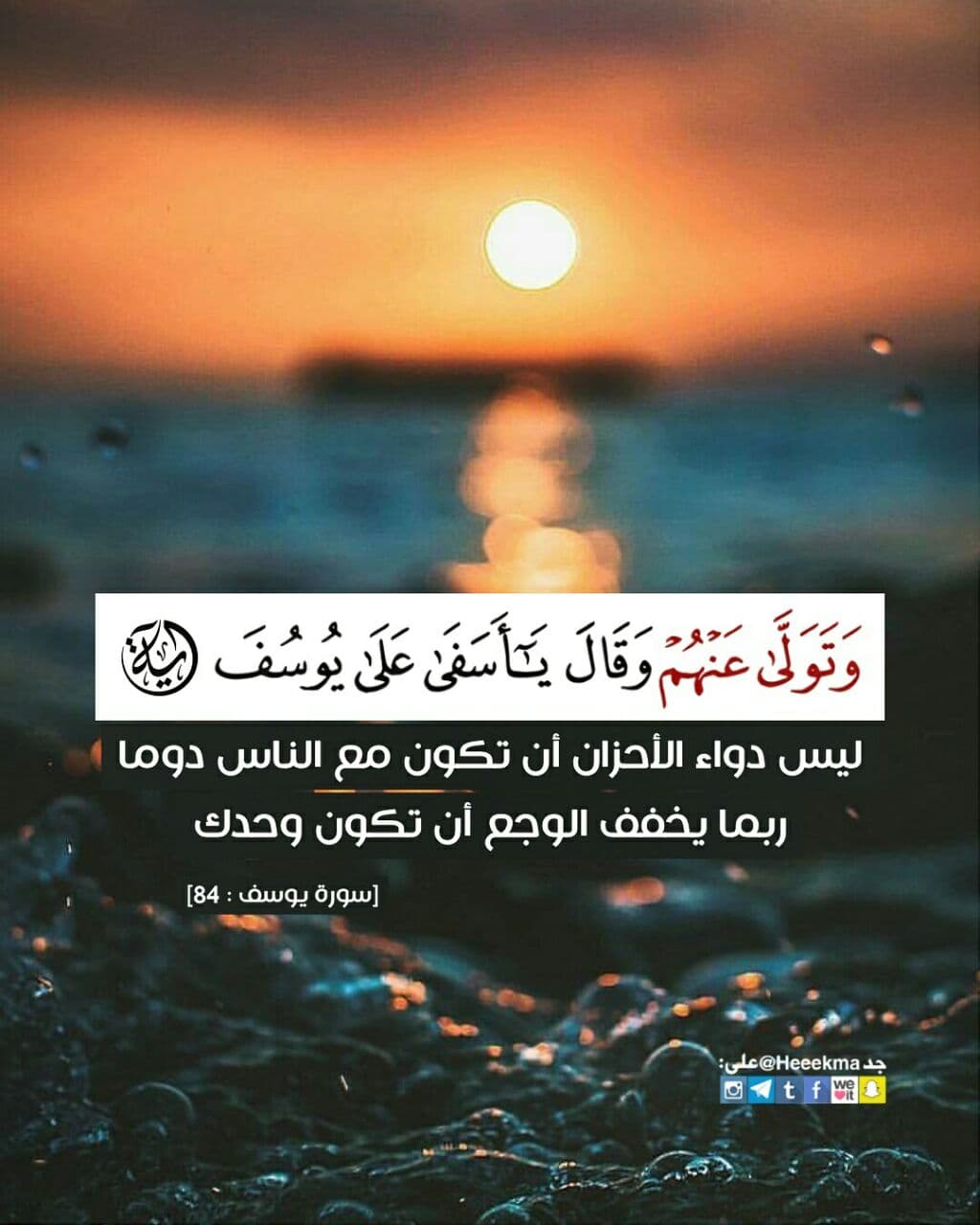 وتولى عنهم وقال يا أسفى على يوسف ليس دواء الأحزان أن تكون مع الناس دوما ربما يخفف الوجع ان تكون وحدك