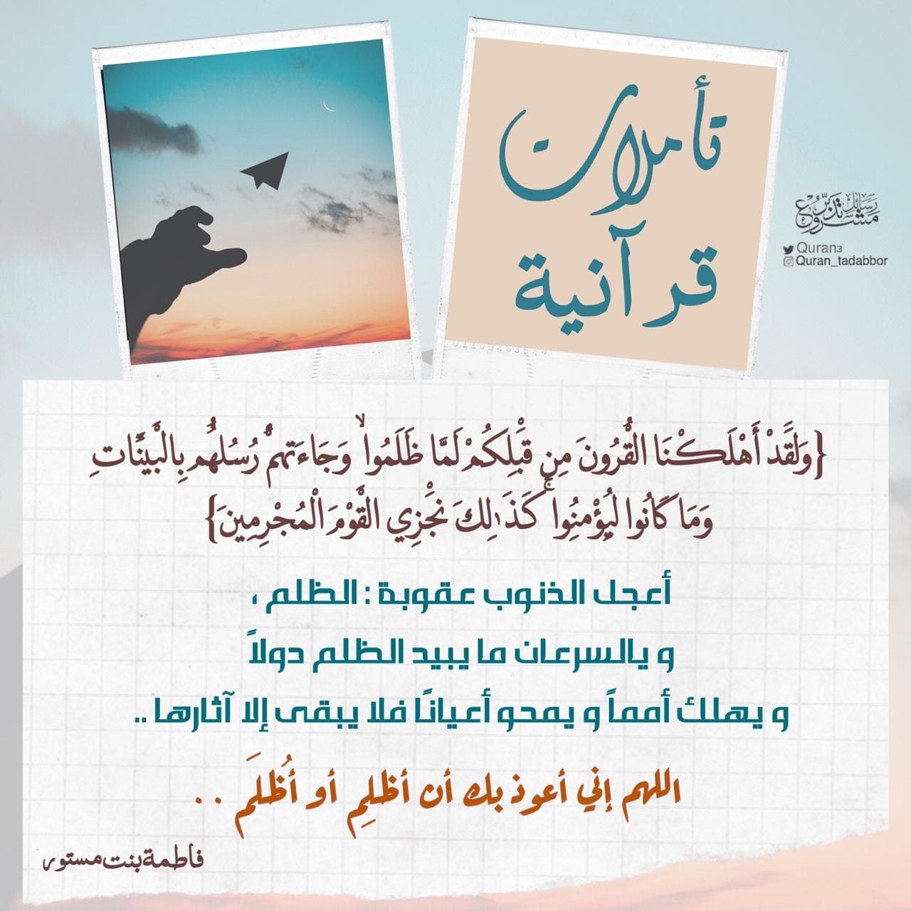 تأملات قرآنية {وَلَقَدْ أَهْلَكْنَا الْقُرُونَ مِن قَبْلِكُمْ لَمَّا ظَلَمُوا ۙ وَجَاءَتْهُمْ رُسُلُهُم بِالْبَيِّنَاتِ وَمَا كَانُوا لِيُؤْمِنُوا ۚ كَذَٰلِكَ نَجْزِي الْقَوْمَ الْمُجْرِمِينَ} أعجل ا... المزيد