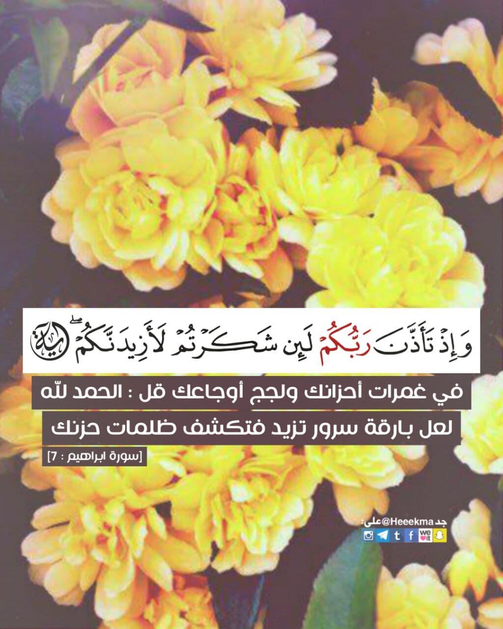 وإذ تأذن ربكم لئن شكرتم لأزيدنكم في غمرات أحزانك ولجج أوجاعك قل : الحمد لله لعل بارقة سرور تزيد فتكشف ظلمات حزنك