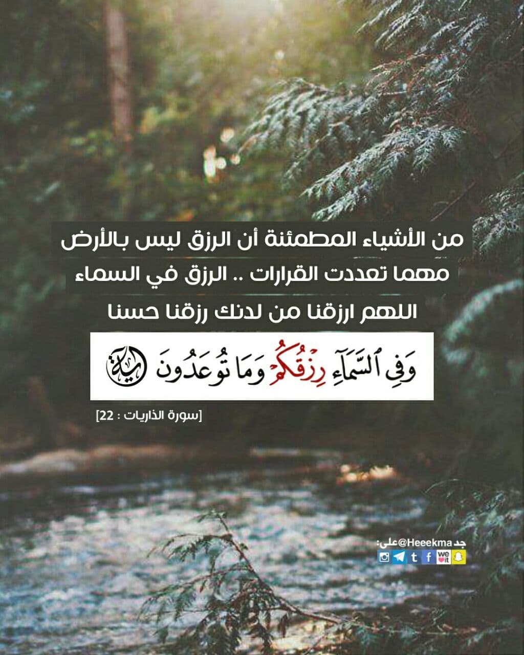 • ﴿وَفِي السَّمَاءِ رِزْقُكُمْ وَمَا تُوعَدُونَ ﴿٢٢﴾    [الذاريات   آية:٢٢]