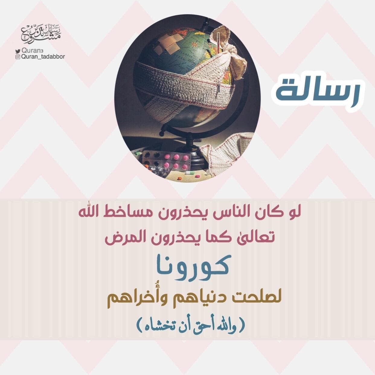 رسالة ‏لو كان الناس يحذرون مساخط الله تعالى كما يحذرون المرض ( #كورونا ) لصلحت دنياهم وأُخراهم . ( والله أحق أن تخشاه )