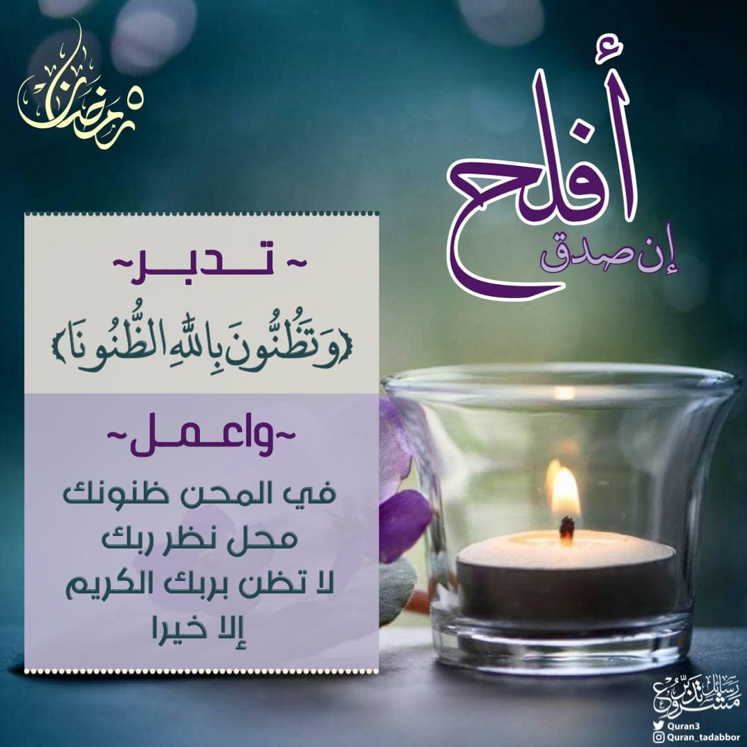 أفلح إن صدق•• تدبَّر : ( وَتَظُنُّونَ بِاللَّهِ الظُّنُونَا ) واعمل : ‏في المحن ظنونك محل نظر ربك ‏لا تظن بربك الكريم إلا خيرا