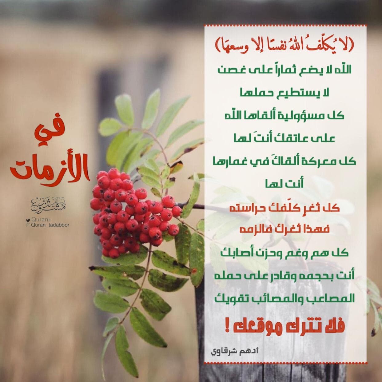 "لا يُكلّفُ اللهُ نفسًا إلا وسعَها"