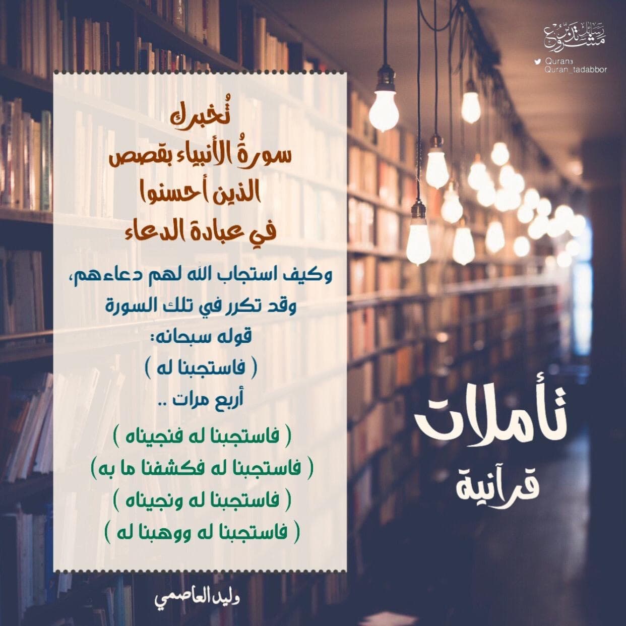 وكيف استجاب الله لهم دعاءهم، وقد تكرر في تلك السورة قوله سبحانه : ( فاستجبنا له ) أربع مرات ..