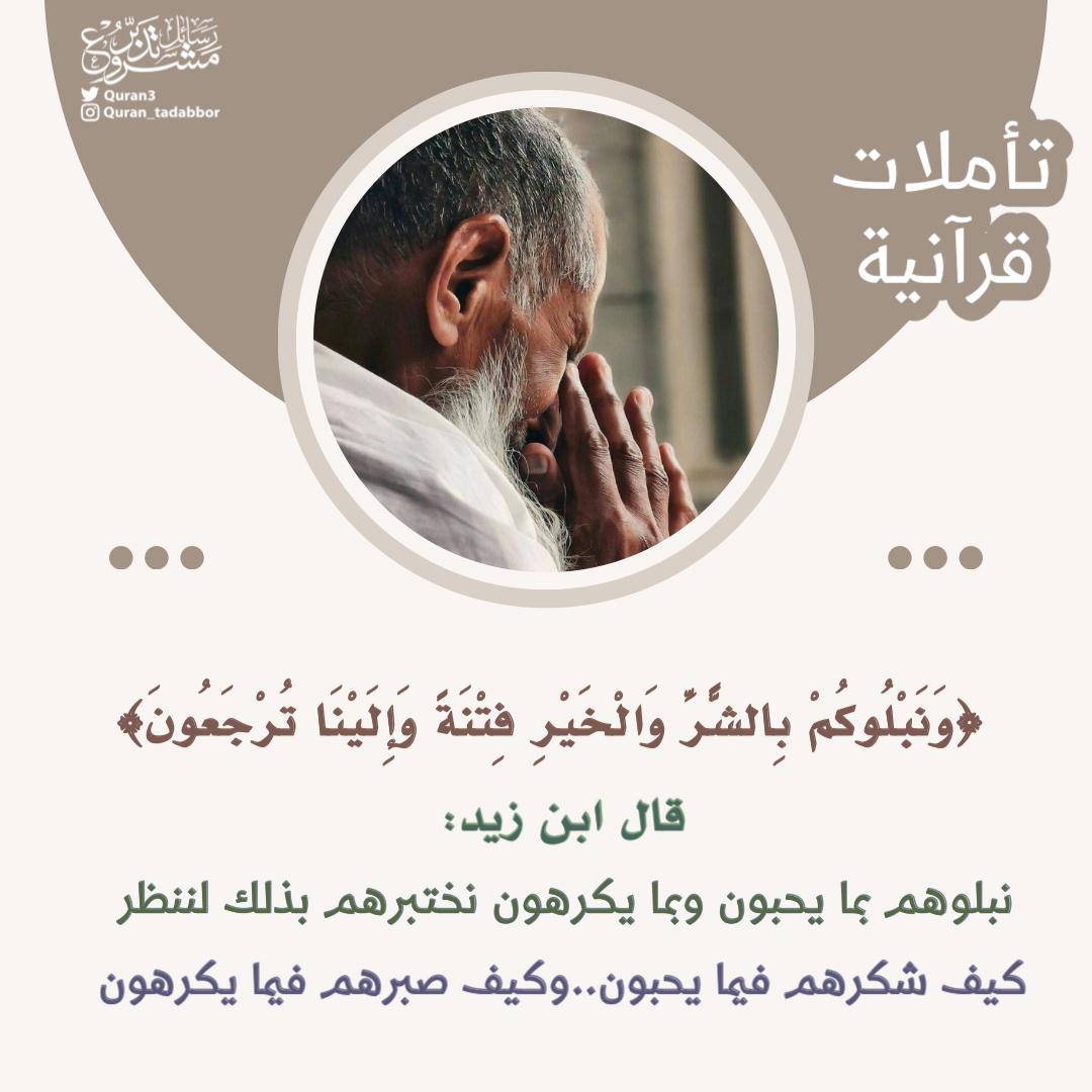 ﴿وَنَبْلُوكُم بِالشَّرِّ وَالْخَيْرِ فِتْنَةً وَإِلَيْنَا تُرْجَعُونَ﴾