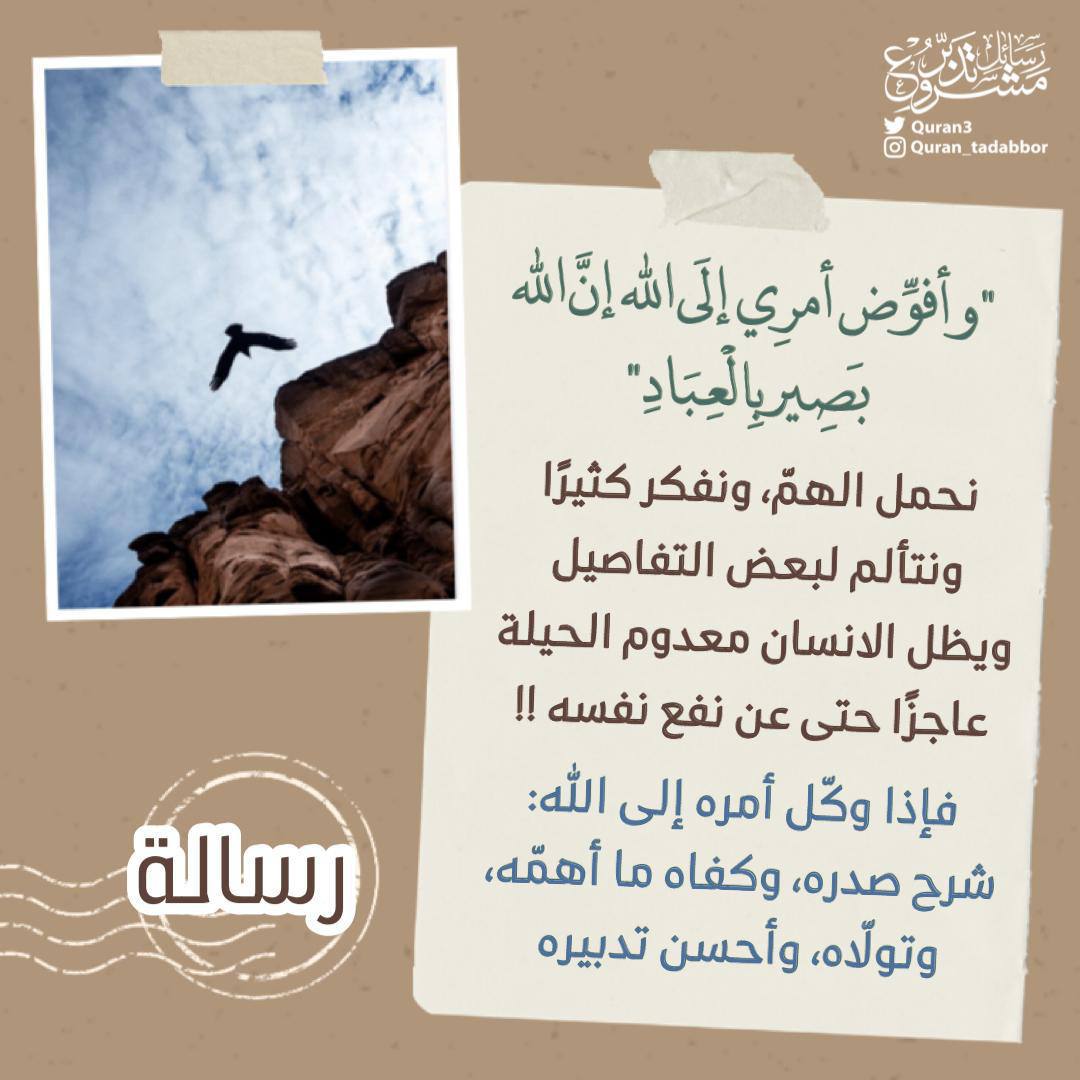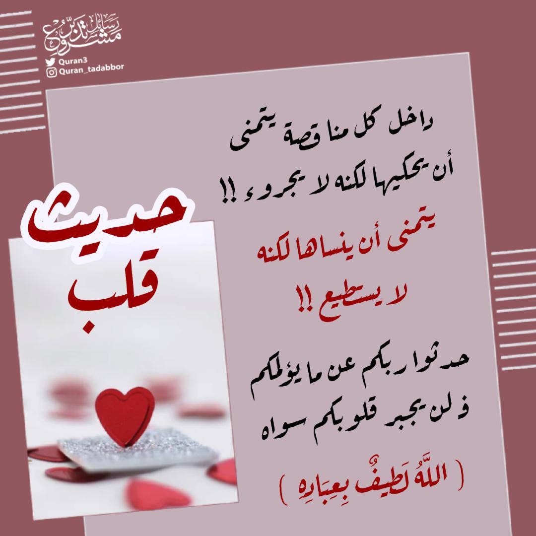 داخل كل منا قصة يتمنى أن يحكيها لكنه لا يجرؤ!!، يتمنى أن ينساها لكنه لا يستطيع!!، حدثوا ربكم عن ما يؤلمكم، فـ لن يجبر قلوبكم سواه.