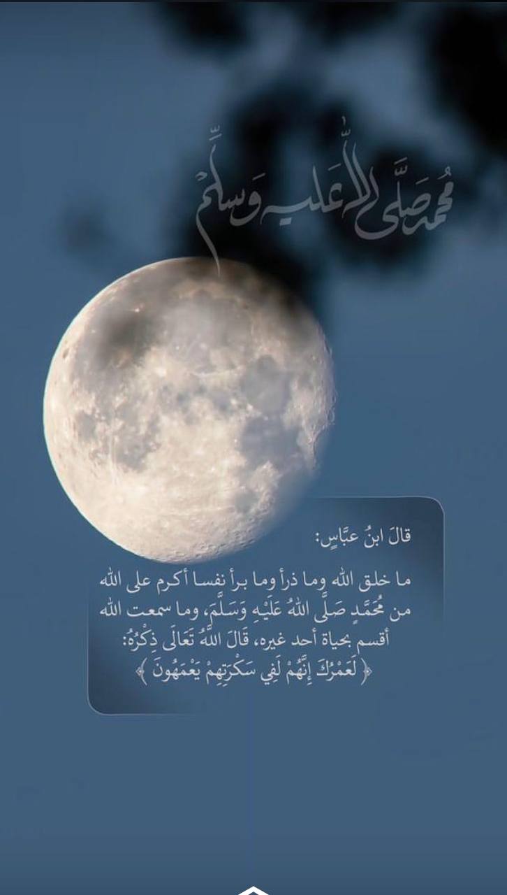 قالَ ابنُ عبَّاس: ما خلق الله وما ذرأ وما برأ نفسا أكرم على الله من مُحَمَّدٍ صَلَّى اللهُ عَلَيْهِ وَسَلَّمَ، وما سمعت الله أقسم بحياة أحد غيره، قَالَ اللَّهُ تَعَالَى ذِكْرُهُ: (لَعَمْرُكَ إِنَّهُمْ لَفِي سَكْرَتِهِمْ يَعْمَهُونَ).
