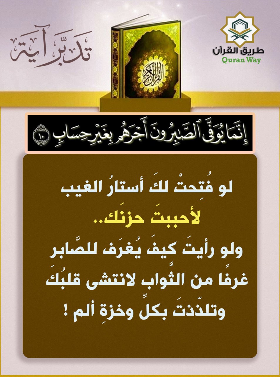 ( إِنَّمَا يُوَفَّى الصَّابِرُونَ أَجْرَهُمْ بِغَيْرِ حِسَابٍ )