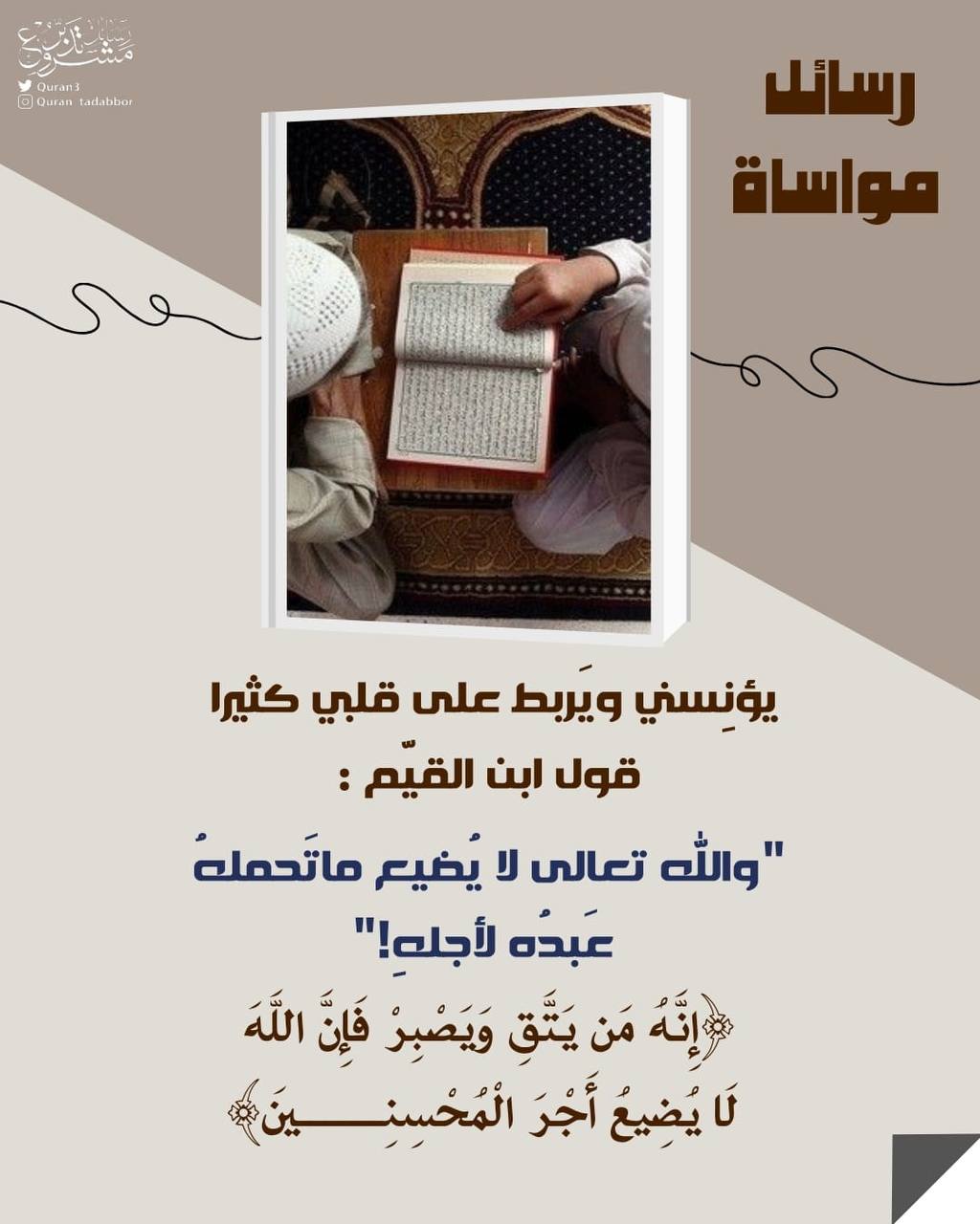يؤنِسني ويَربط علىٰ قَلبي كثيرًا قول ابن القيّم :