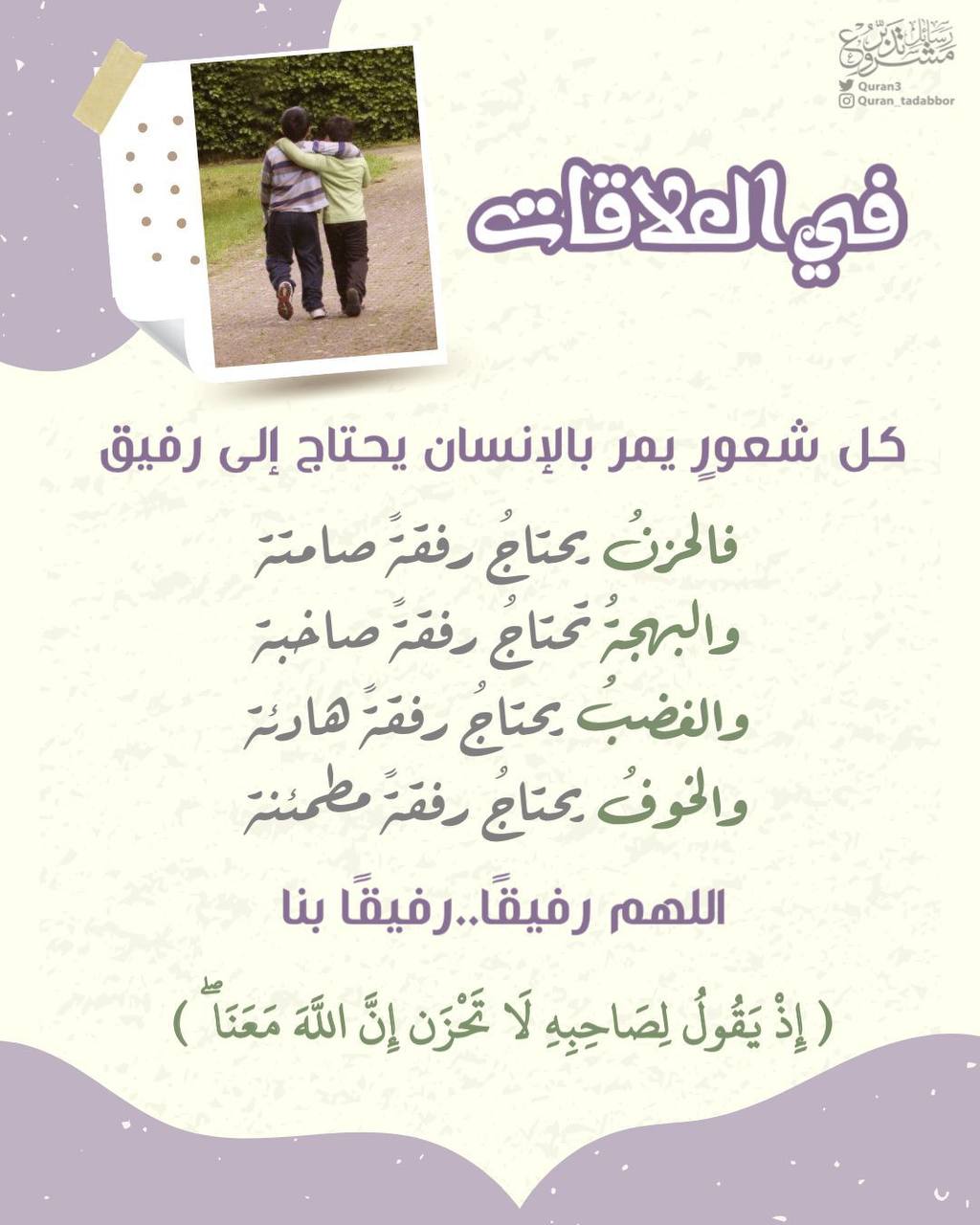 "كل شعورٍ يمر بالإنسان يحتاج إلى رفيق؛