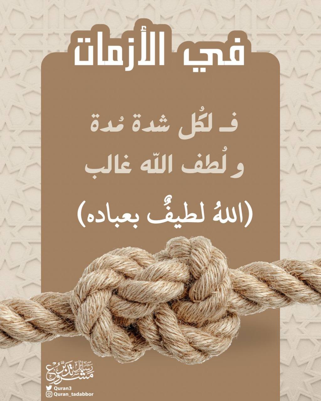 "فـ لكُل شدة مُدة, و لُطف الله غالب"