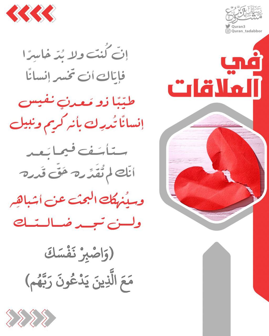 " إنّ كُنت ولا بُدّ خاسِرًا؛ فإيّاك أن تخسر إنسانًا طيّبًا ذو مَعدنٍ نفيس، إنسانًا تُدرِك بأنه كريم ونبيل،