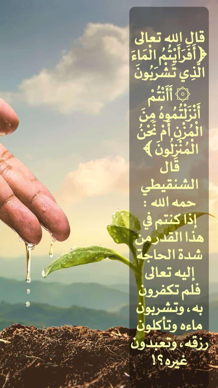 ﴿أَفَرَأَيْتُمُ الْمَاءَ الَّذِي تَشْرَبُونَ . أَأَنتُمْ أَنزَلْتُمُوهُ مِنَ الْمُزْنِ أَمْ نَحْنُ الْمُنزِلُونَ﴾