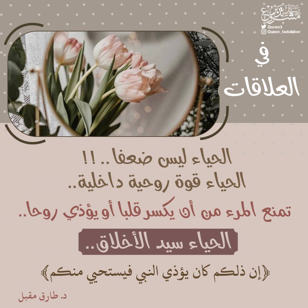 الحياء ليس ضعفاً، الحياء قوة روحية داخلية، تمنع المرء من أن يكسر قلبا أو يؤذي روحا، الحياء سيد الأخلاق.