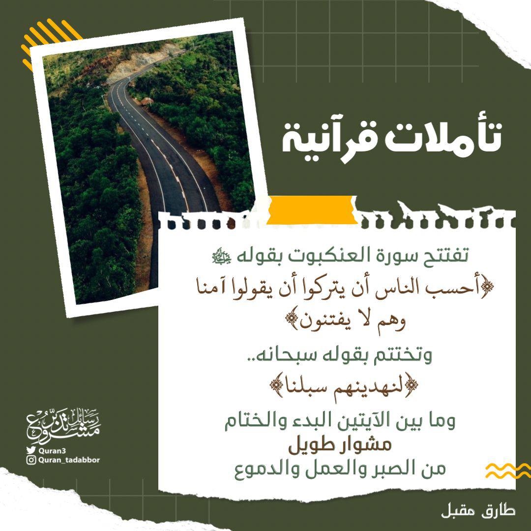 تفتتح سورة العنكبوت بقوله (ﷻ): (أحسب الناس أن يتركوا أن يقولوا آمنا وهم لا يفتنون) .. وتختتم بقوله سبحانه .. (لنهدينهم سبلنا) .. وما بين الآيتين البدء والختام مشوار طويل من الصبر والعمل والدموع.