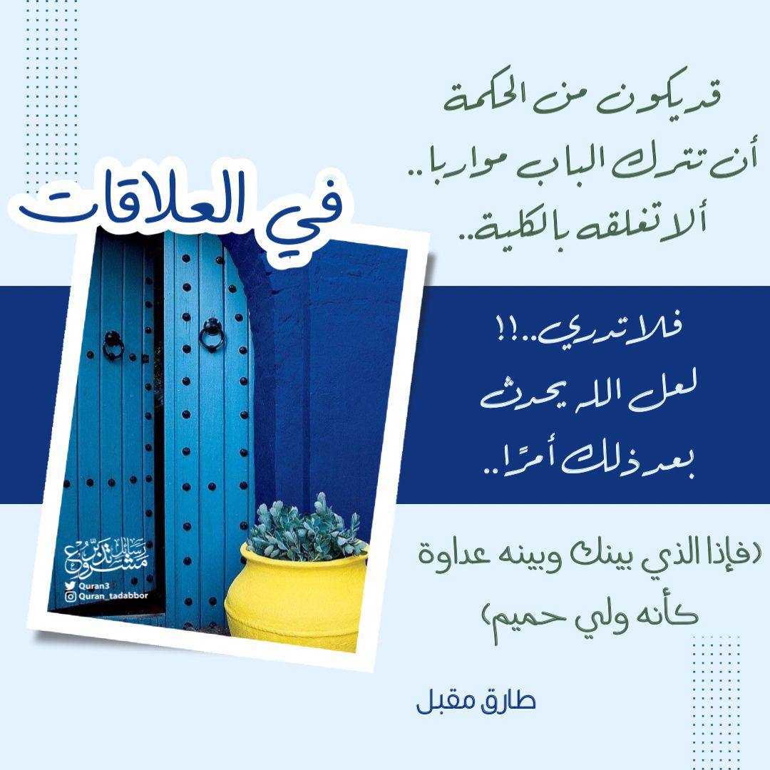 قد يكون من الحكمة أن تترك الباب مواربا.. ألا تغلقه بالكلية .. فلا تدري.. !! لعل الله يحدث بعد ذلك أمرًا.. ﴿فإذا الذي بينك وبينه عداوة كأنه ولي حميم﴾