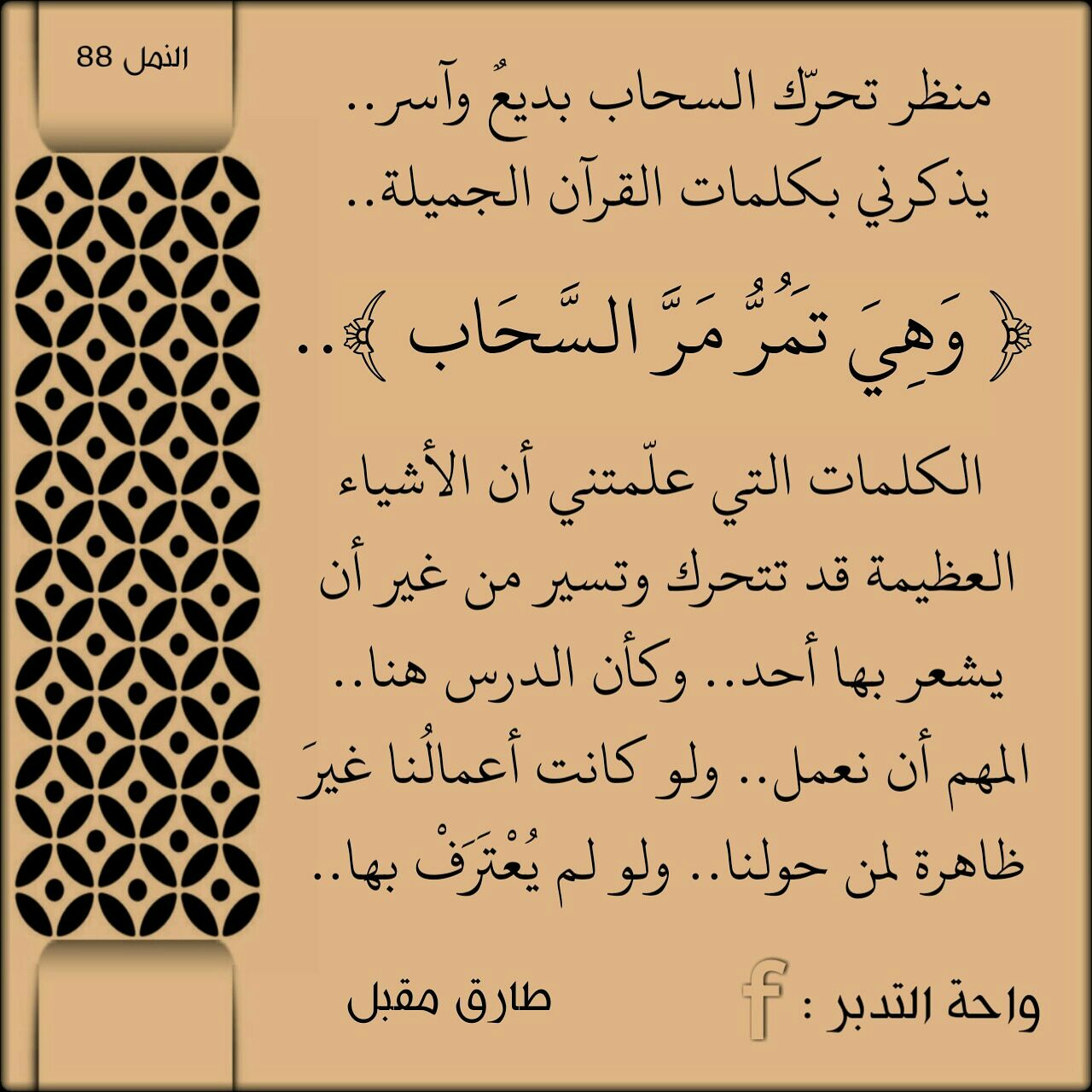 منظر تحرّك السحاب بديعٌ وآسر .. يذكرني بكلمات القرآن الجميلة .. (وَهِيَ تَمُرُّ مَرَّ السَّحَابِ) .. الكلمات التي علّمتني أن الأشياء العظيمة قد تتحرك وتسير من غير أن... المزيد