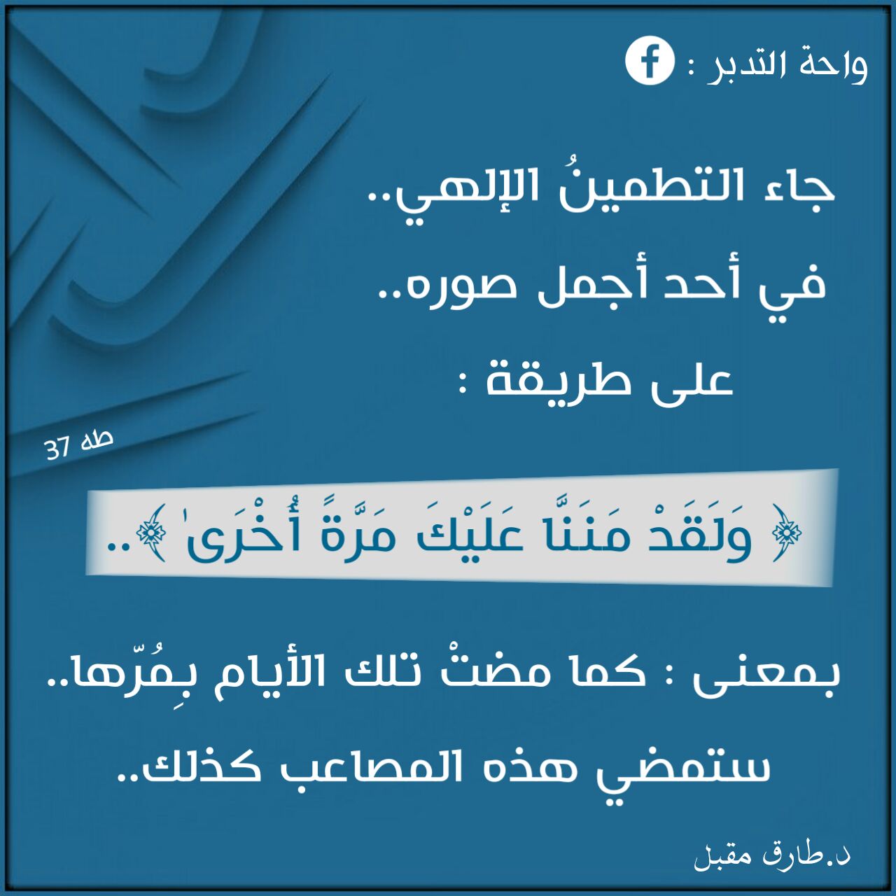 جاء التطمينُ الإلهي.. في أحد أجمل صوره.. على طريقة (وَلَقَدْ مَنَنَّا عَلَيْكَ مَرَّةً أُخْرَىٰ) .. بمعنى: كما مضتْ تلك الأيام بِمُرّها .. ستمضي هذه المصاعب كذلك.