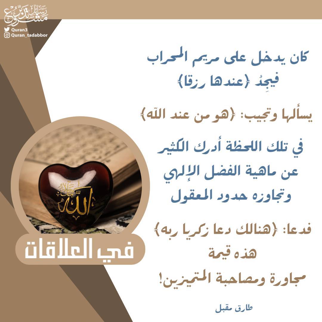 ﴿كُلَّمَا دَخَلَ عَلَيْهَا زَكَرِيَّا الْمِحْرَابَ وَجَدَ عِندَهَا رِزْقًا قَالَ يَا مَرْيَمُ أَنَّى لَكِ هَذَا قَالَتْ هُوَ مِنْ عِندِ اللَّهِ﴾ ، ﴿هُنَالِكَ دَعَا زَكَرِيَّا رَبَّهُ﴾