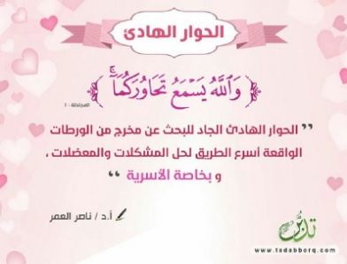 " الحوار الهادئ الجاد للبحث عن مخرج من الورطات الواقعة أسرع وأسلم الطرق لحل المشكلات والمعضلات، وبخاصة الأسرية ".