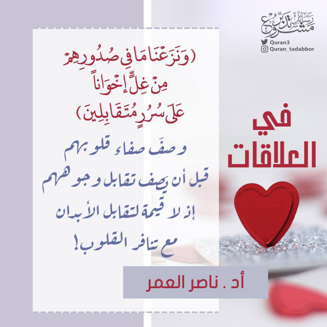 ﴿وَنَزَعْنَا مَا فِي صُدُورِهِم مِّنْ غِلٍّ إِخْوَانًا عَلَى سُرُرٍ مُّتَقَابِلِينَ﴾