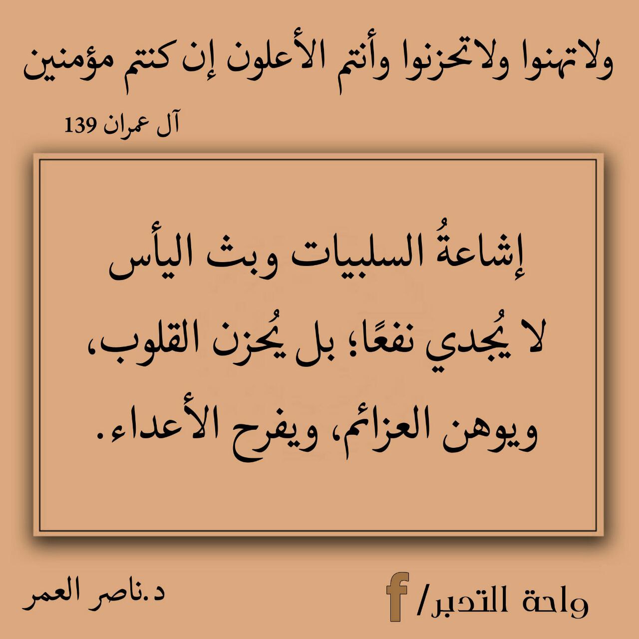 إشاعةُ السلبيات وبث اليأس لا يُجدي نفعًا؛ بل يُحزن القلوب، ويوهن العزائم، ويفرح الأعداء.