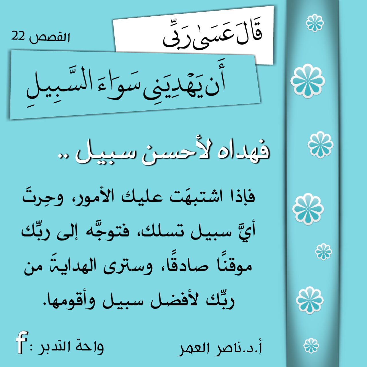 ﴿قَالَ عَسَى رَبِّي أَن يَهْدِيَنِي سَوَاءَ السَّبِيلِ﴾: