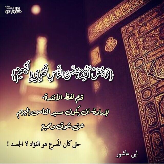 (فَاجْعَلْ أَفْئِدَةً مِّنَ النَّاسِ تَهْوِي إِلَيْهِمْ) قدم لفظ الأفئدة لإرادة أن يكون مسير الناس إليهم عن شوق ومحبة حتى كأن المسرع هو الفؤاد لا الجسد