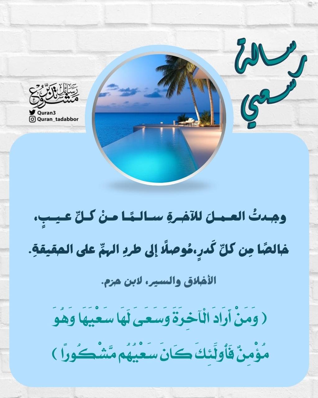 ( وَمَنْ أَرَادَ الْآخِرَةَ وَسَعَىٰ لَهَا سَعْيَهَا وَهُوَ مُؤْمِنٌ فَأُولَٰئِكَ كَانَ سَعْيُهُم مَّشْكُورًا )
