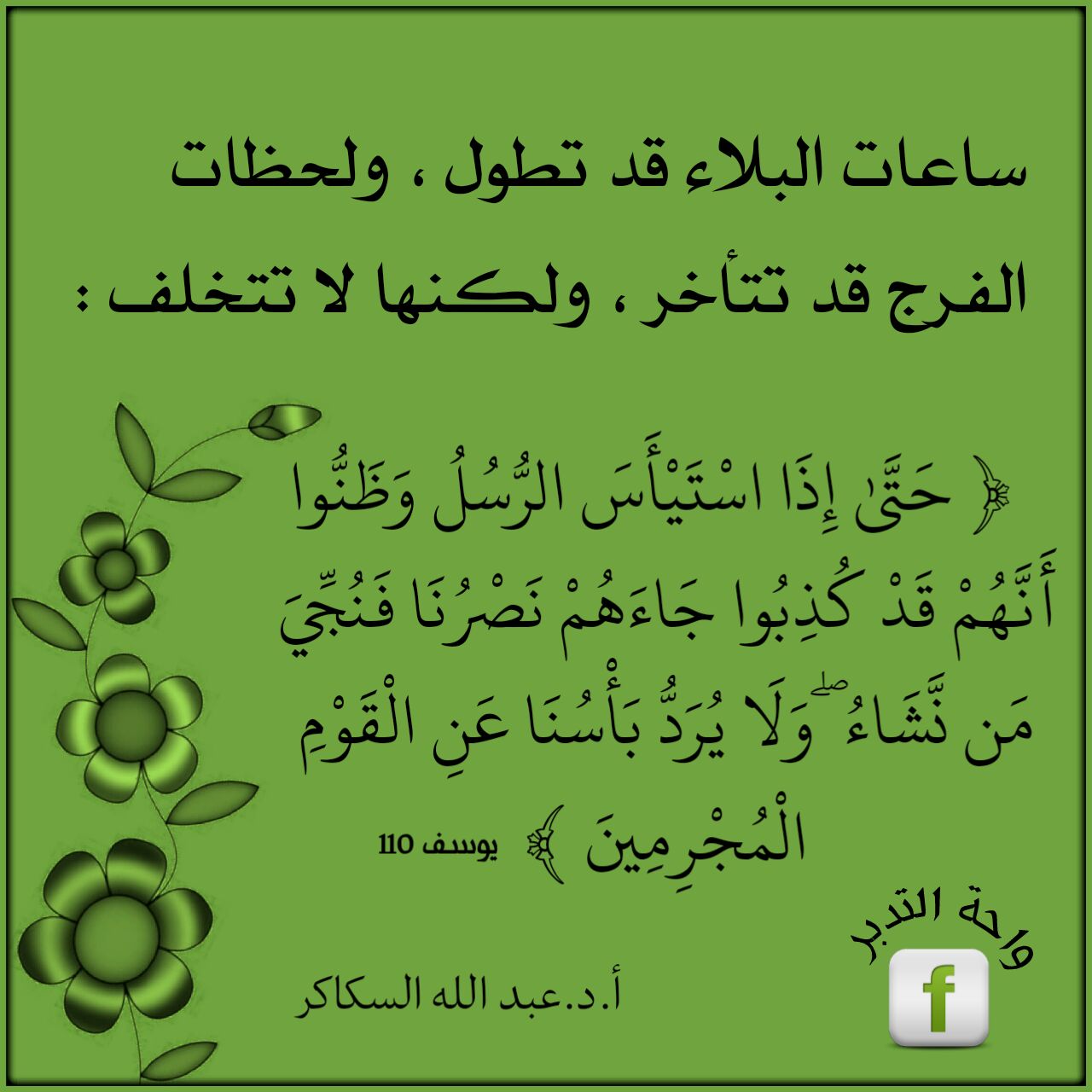 ساعات البلاء قد تطول ولحظات الفرج قد تتأخر ولكنها لا تتخلف.