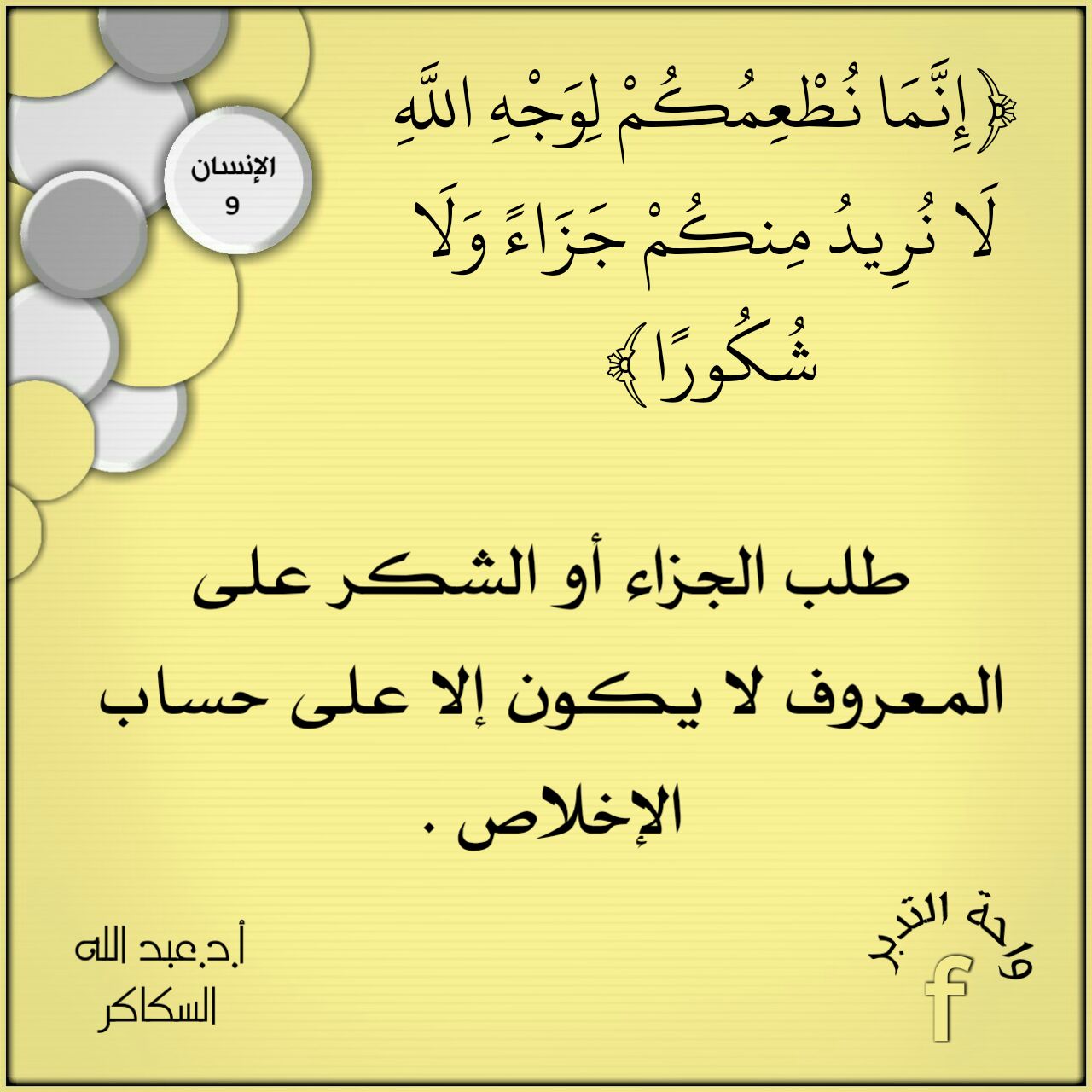 ﴿إِنَّمَا نُطْعِمُكُمْ لِوَجْهِ اللَّهِ لَا نُرِيدُ مِنكُمْ جَزَاءً وَلَا شُكُورًا﴾: