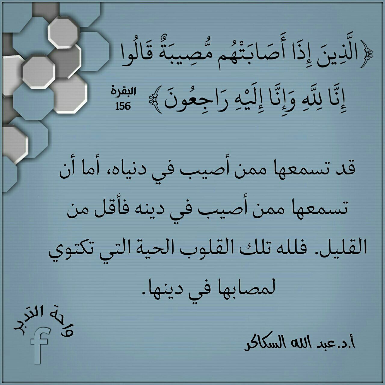﴿الَّذِينَ إِذَا أَصَابَتْهُم مُّصِيبَةٌ قَالُوا إِنَّا لِلَّهِ وَإِنَّا إِلَيْهِ رَاجِعُونَ﴾: