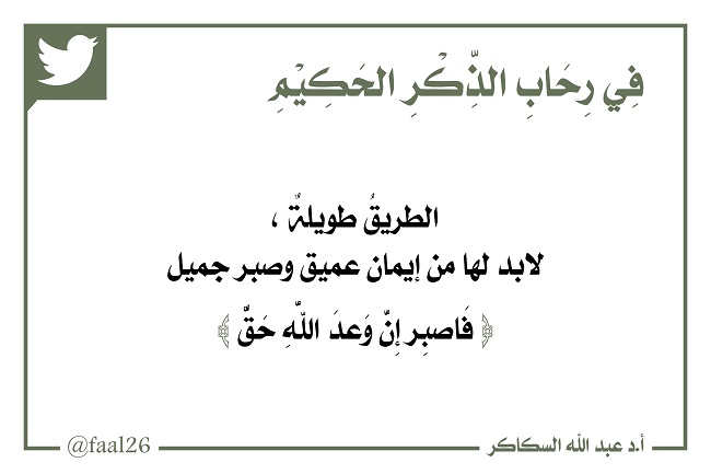 ﴿فَاصْبِرْ إِنَّ وَعْدَ اللَّهِ حَقٌّ﴾: الطريقُ طويلةٌ، لابد لها من إيمان عميق وصبر جميل: (فَاصبِر إِنَّ وَعدَ اللَّهِ حَقٌّ).
