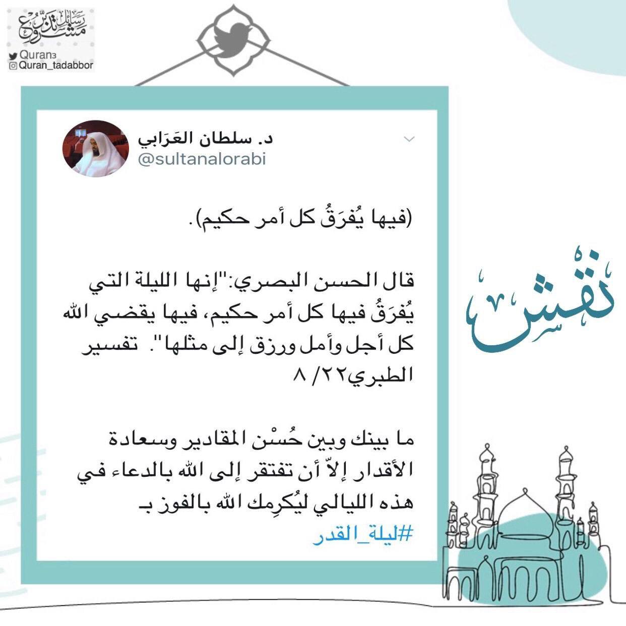 قال الحسن البصري: "إنها الليلة التي يُفرَقُ فيها كل أمر حكيم، فيها يقضي الله كل أجل وأمل ورزق إلى مثلها". (تفسير الطبري؛ ٨/٢٢) .. ما بينك وبين حُسْن المقادير وسعادة الأقدار إلا أن تفتقر إلى الله بالدعاء في هذه الليالي ليُكرمك الله بالفوز بـ (ليلة القدر).