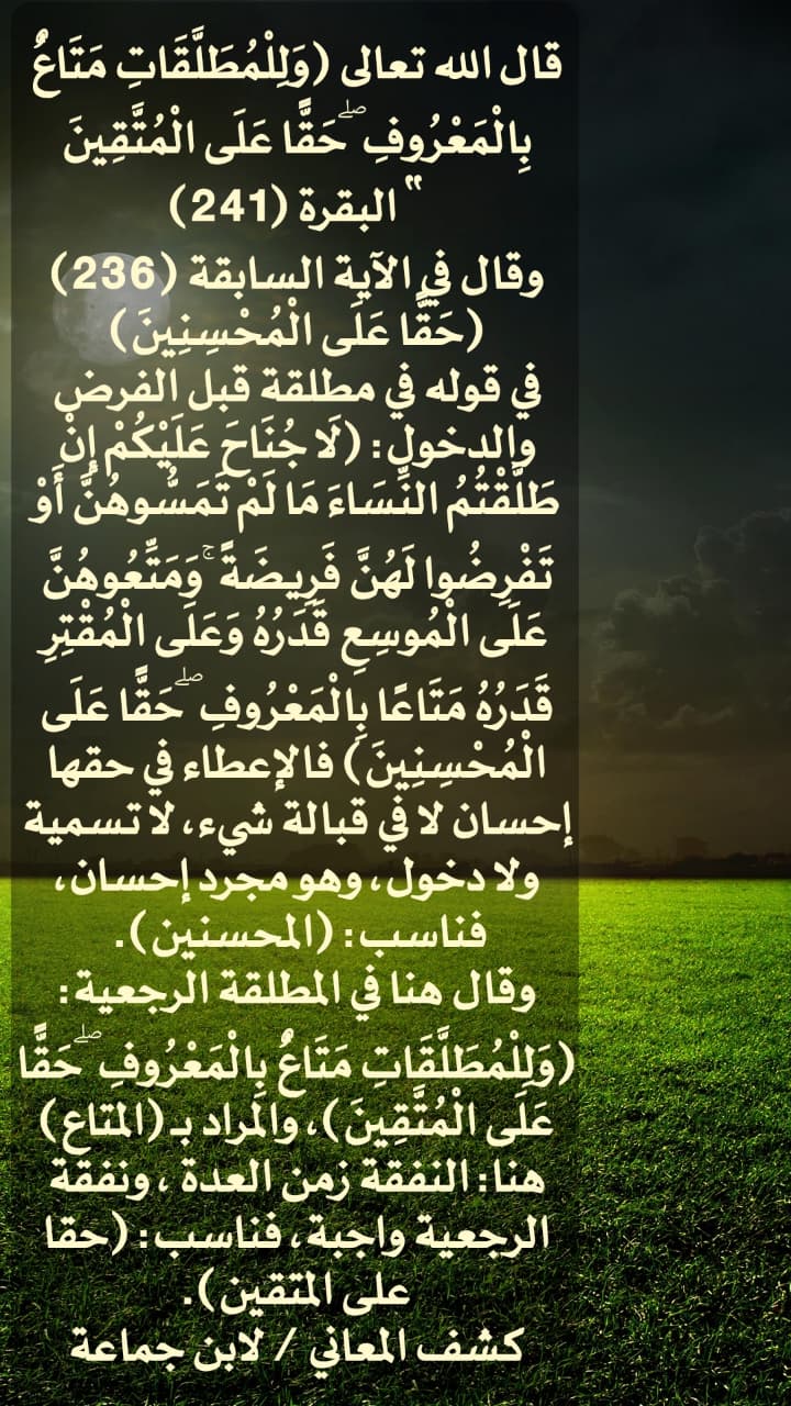 ﴿وَلِلْمُطَلَّقَاتِ مَتَاعٌ بِالْمَعْرُوفِ حَقًّا عَلَى الْمُتَّقِينَ﴾