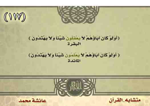 - ﴿وَإِذَا قِيلَ لَهُمُ اتَّبِعُوا مَا أَنزَلَ اللَّهُ قَالُوا بَلْ نَتَّبِعُ مَا أَلْفَيْنَا عَلَيْهِ آبَاءَنَا أَوَلَوْ كَانَ آبَاؤُهُمْ لَا يَعْقِلُونَ شَيْئًا وَلَا يَهْتَدُونَ ﴿١٧٠﴾ ﴾ [البقرة آية:١٧٠]