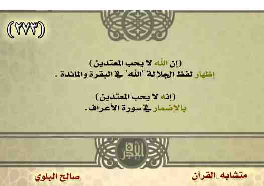 (إن الله لا يحب المعتدين) إظهار لفظ الجلالة "الله" في البقرة والمائدة.